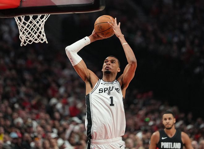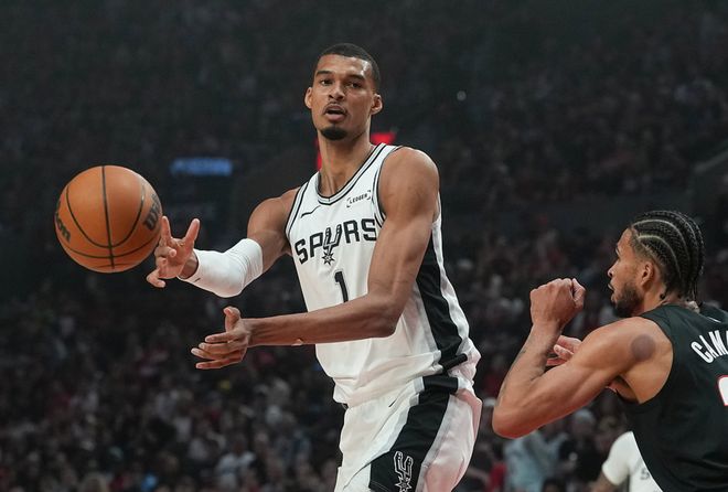 文班17中9(三分4中1)得到27分11板3助4断7帽,22岁112天的他成为马刺59年队史季后赛最年轻砍下25分10板5帽的球员,前队史纪录是大卫罗宾逊的24岁263天。福克斯17中11(三分8中4)得到28分6板7助2帽,得分创马刺生涯季后赛纪录,卡斯尔14中6(三分6中3)得到16分1板8助1断、瓦塞尔11分6板3助。