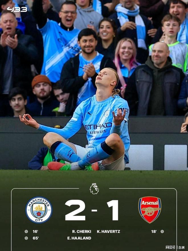 英超第33轮天王山之战,曼城主场2-1战胜阿森纳,少赛1场积67分仍居第2,落后阿森纳只有3分。枪手积70分位居榜首。谢尔基一条龙首开纪录,多纳鲁马超巨失误送礼,哈弗茨扳平比分,哈兰德破门,埃泽和加布里埃尔中柱,罗德里伤退。