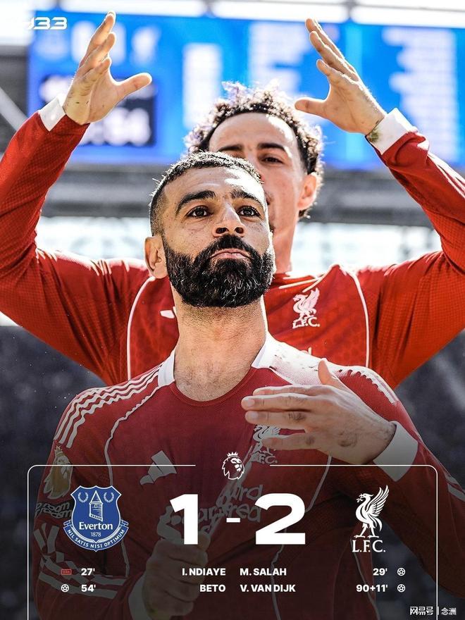 利物浦客场2-1击败埃弗顿,取得两连胜,积55分仍居第5。恩迪亚耶破门无效,加克波助攻萨拉赫推射首开纪录,贝托推射扳平比分,马马尔达什维利伤退,索博助攻范戴克头球第100分钟读秒绝杀。