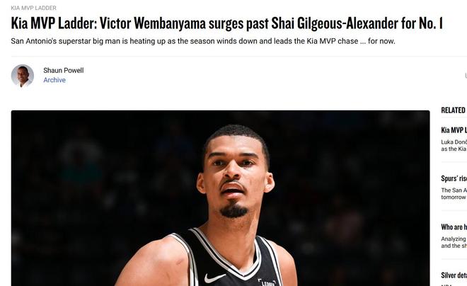 凭借马刺队更加出色的战绩,以及恐怖的攻防影响力,文班亚马在最新一期MVP榜单中反超SGA登顶。